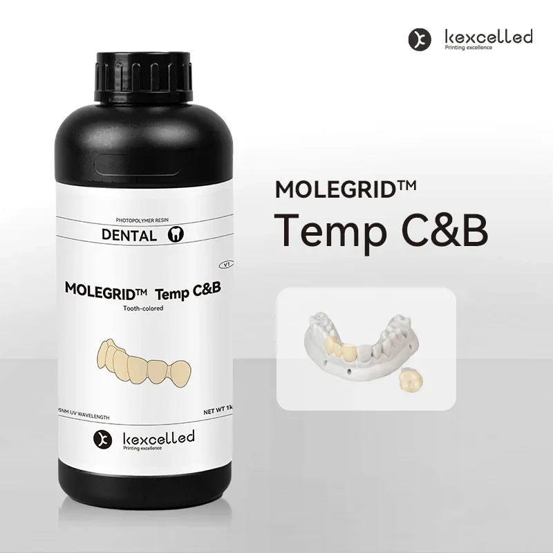 MOLEGRID™ Temp C&B is a high-performance tooth-colored dental 3D printing resin designed for producing temporary crowns and bridges with natural aesthetics and strong mechanical performance. It is widely used in dental labs and clinics for fast digital restorations.